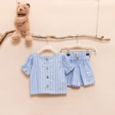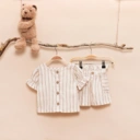 Kanaya Set adalah pakaian anak perempuan berjenis one set (stelan) yang di desain dengan model pants semi highwist. Pada bagian baju di lengkapi dengan variasi kancing dan kerah kotak yang cantik.